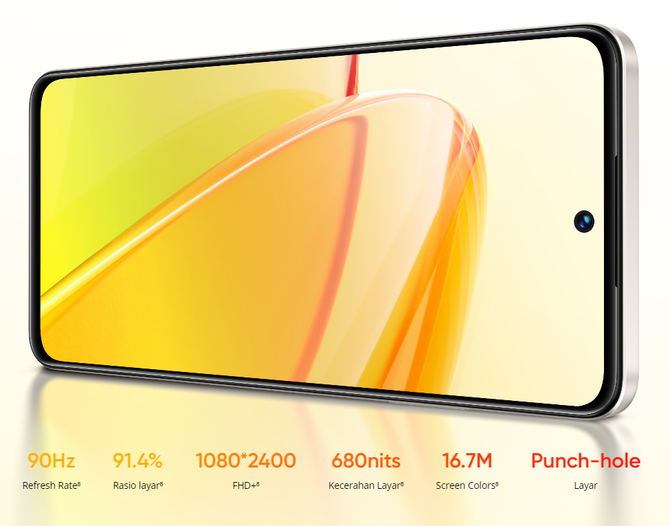 Sus dimensiones abarcan 165,6 x 75,9 x 7,89 milímetros. Pesa 189,5 gramos. La pantalla es IPS LCD de 6,72 pulgadas a resolución Full HD+. Tiene una tasa de refresco de 90 Hz. La tasa de muestreo táctil se ubica en los 180 Hz. El brillo máximo alcanza los 680 nits. Consigue un aprovechamiento del 91,4% con respecto al resto del frontal.