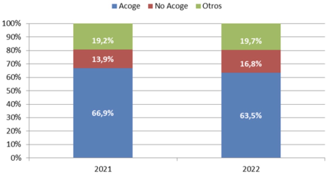 En el año pasado, hubo un 63,5% de los reclamos que fueron acogidos de manera favorable por parte de los operadores, aunque dicho índice disminuyó en 3,4 puntos porcentuales si comparamos con el año 2021, cuando un 66,9% de los casos fueron acogidos por las compañías.