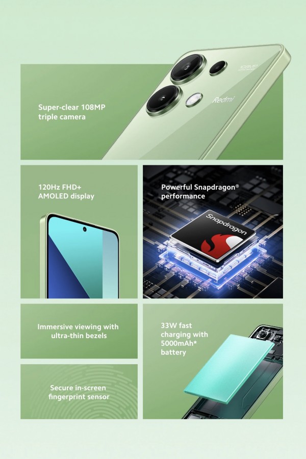 El Redmi Note 13 Pro trae el mismo sensor de 200MP Samsung ISOCELL HP3 que el Note 13 Pro 5G con hasta 4x en el sensor de recorte de zoom. Por su lado, el RedmiNote 13 4G trae una cámara principal de 108MP con un zoom de 3x en el sensor