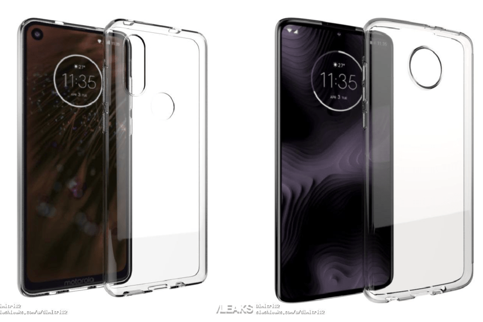 El primero de estos dos gadgets es el Motorola P40. En las ilustraciones puede apreciarse la presencia de un agujero en su pantalla, ubicado en la parte superior izquierda.