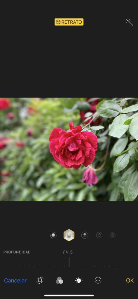 Cuando iniciamos la app de la cámara nos encontraremos con la interfaz sencilla y fácil de usar que Apple nos tiene acostumbrados a ver en los iPhone, especialmente en el iPhone X. Sin embargo acá tendremos la posibilidad la opción «Control de Profundidad» al momento de realizar una fotografía en modo retrato. De esta manea podremos ajustar la apertura sin afectar la exposición de la imagen.