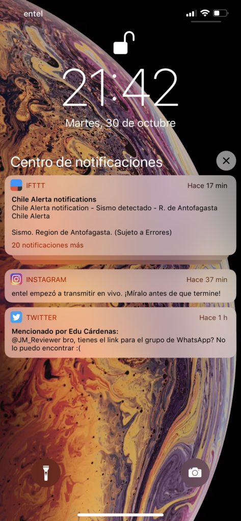 - Red móvil activa: Entel 4G y Wi-Fi activos