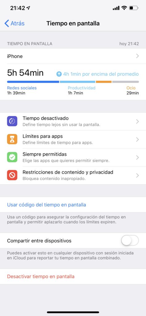 El sistema operativo también incluye funciones como «Tiempo en Pantalla» el cual irá registrando el uso que le damos al iPhone y así nos va creando un resumen de las aplicaciones que más usamos, cuánto tiempo pasamos usando el iPhone, entre otros datos. A la vez podremos configurar dicha opción para el iPhone no nos deje usar una función y/o app al cumplir X cantidad de tiempo, una función ideal cuando tenemos hijos y quieran usar el iPhone.