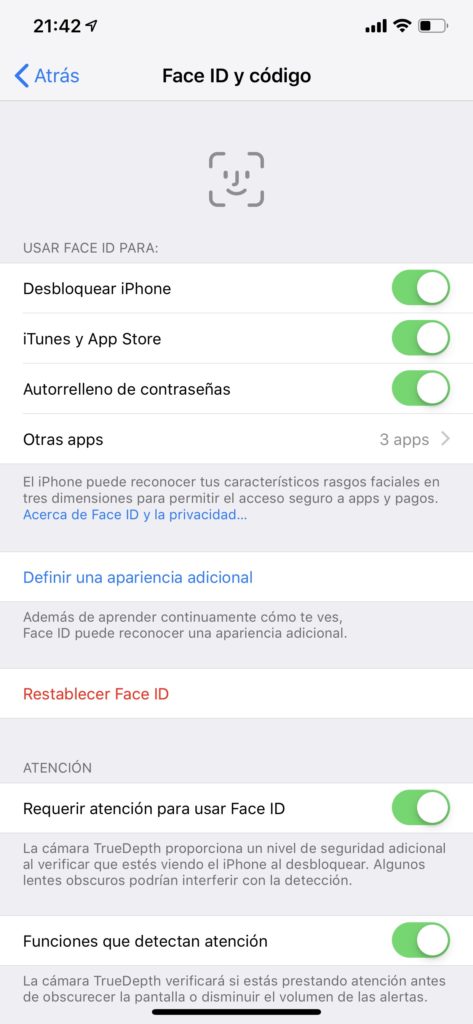 Face ID va aprendiendo continuamente cómo te ves, pero en el caso de necesitar usar otro aspecto físico, puedes registrarlo para así definir una apariencia adicional y no tener problemas con el reconocimiento. También funciona por si deseas agregar el rostro de otra persona, como tu pareja, hijo u otra que sea de tu entera confianza.