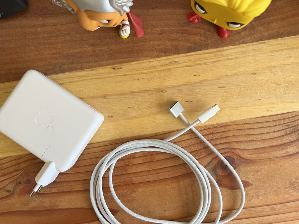 Hablemos de los puertos. En este modelo en particular, encontramos 3 puertos USB C (Thunderbolt 4), 1 puerto de 3.5mm para audífonos, 1 puerto HDMI 2.0 y 1 lector de tarjetas SD. ¿Lo más novedoso? El regreso del puerto MagSafe, que ahora se siente más «fuerte» al momento de conectarlo. Eso sí, cumple perfectamente con su objetivo, ya que si lo tiramos se sale de forma inmediata. Oye, y quiero destacar lo hermoso que es el cable de carga que viene incluido. Por favor que sean todos los cables así de ahora en adelante.