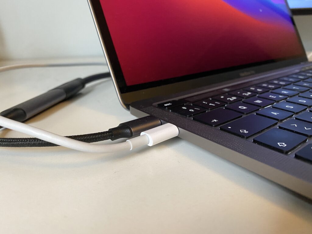 La cantidad de puertos es bastante baja. Con apenas dos puertos USB-C a la izquierda y el conector de audífonos a la derecha, estamos limitados a conectar dos cosas a la vez o invertir en un hub que permita más conexiones. No, no hay lector de SD ni puerto MagSafe. Quizás una versión con 4 puertos habría sido ideal. Ojalá el futuro modelo de 14, 15 o 16 pulgadas traiga mayor cantidad, ya que la variedad la podemos dar por perdida.
