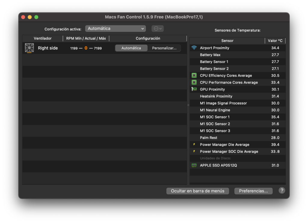 Incluso teniendo todos estos programas corriendo, el equipo corre sin ningún problema. Interfaz fluida, programas abriendo casi de forma casi instantánea o en pocos segundos y, por sobre todo temperaturas bajísimas, rondando los 34ºC. Sí, 34. Mi viejo MacBook Pro de 15 pulgadas tiene mayor temperatura solo con encenderlo, y eso que le cambié la pasta termal.