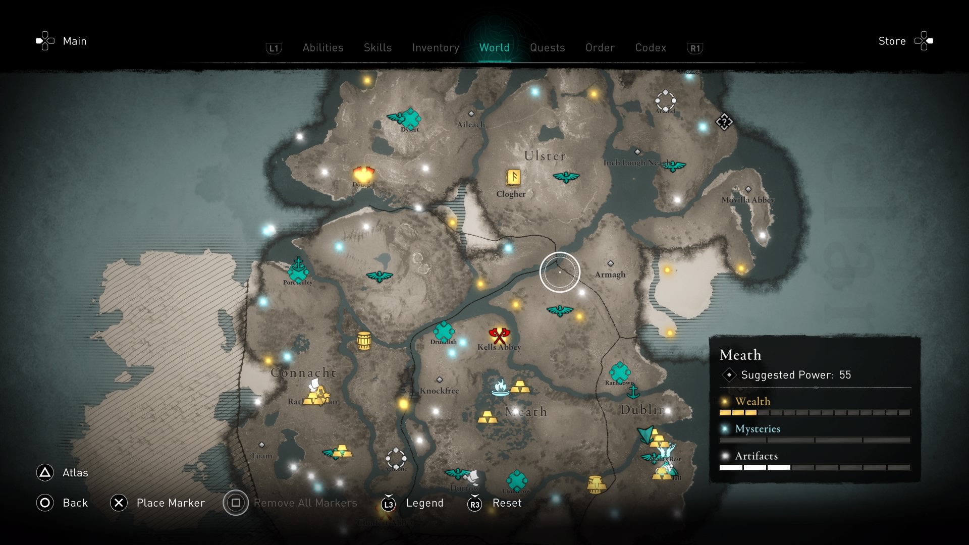 El mapa toma como base la mitad septentrional de la isla de Irlanda, y se divide en cuatro regiones principales: Dublín, Meath, Connacht y Ulster, cada uno con su buena cantidad de puntos de interés, tesoros y misterios por descubir.