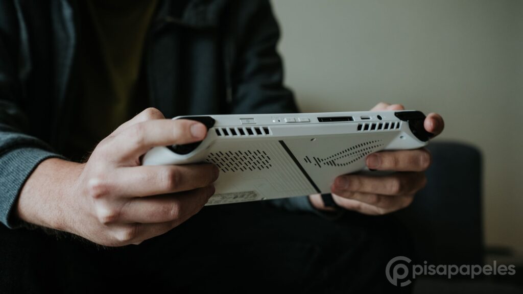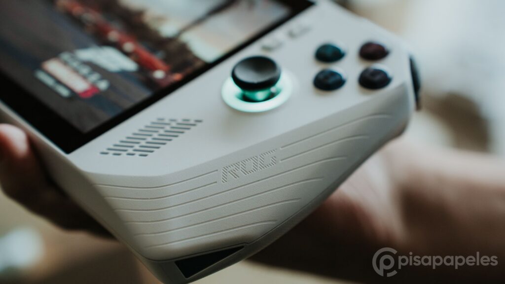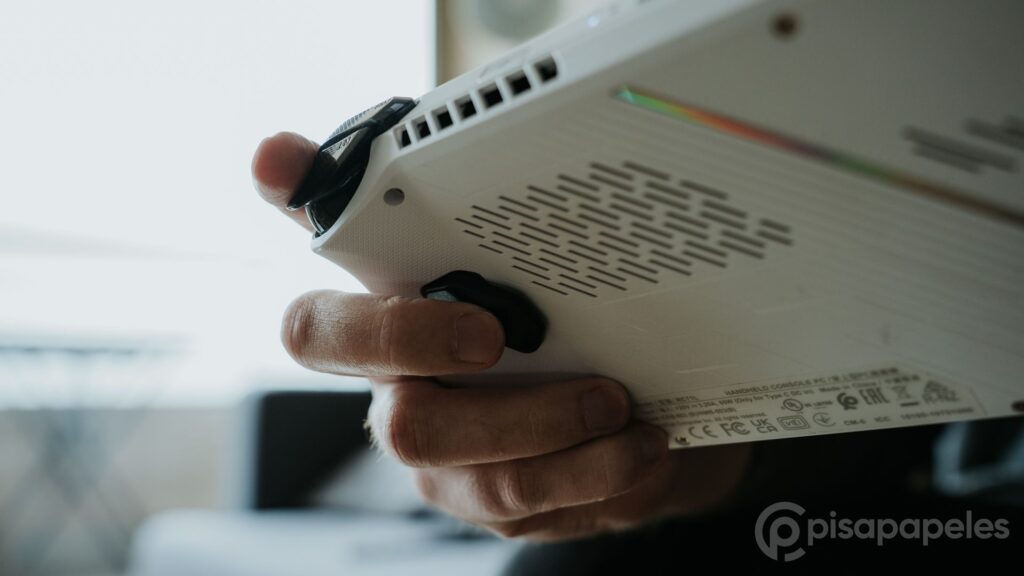 El diseño de la Asus ROG Ally es bastante llamativo. Para aquellos que tienen manos pequeñas, los laterales se sentirán bastante cómodos. Sin embargo, no son tan protuberantes como para ofrecer un agarre 100% ergonómico por lo que puede costar acostumbrarse un poco al tamaño y peso.
