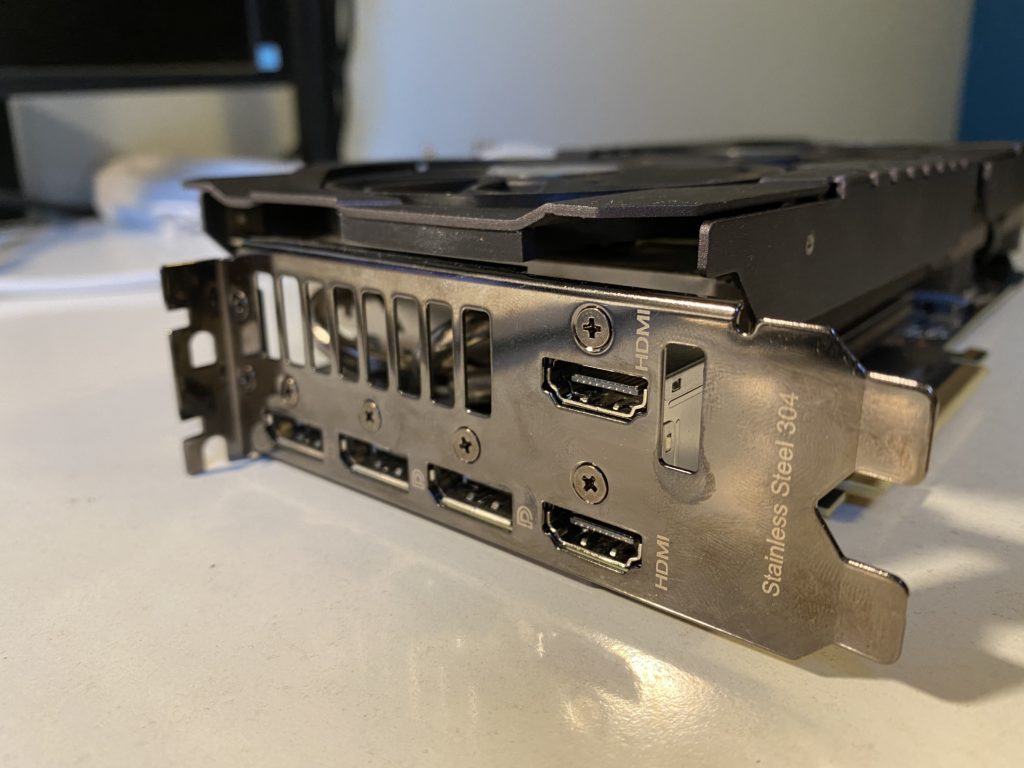 En la sección de los puertos tenemos una gran variedad: dos HDMI 2.1 y tres DisplayPort 1.4a, suficientes para tener todas las pantallas que necesites disponibles y permitiendo múltiples pantallas 4K a 60 o más Hz.