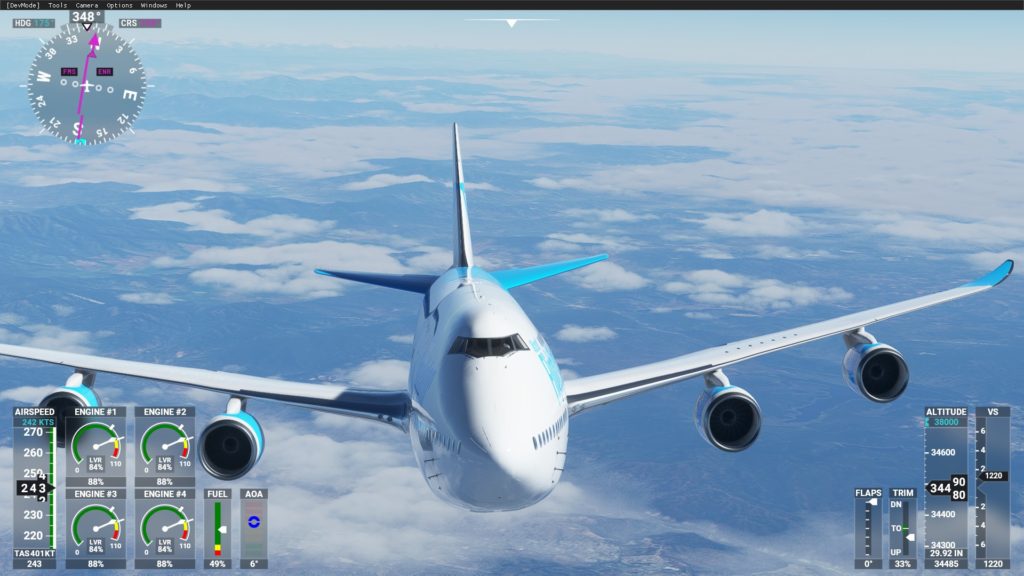Sin embargo, hasta el momento no hay tarjeta gráfica que no sufra ante el juego que es probablemente el más demandante hasta la fecha y lo seguirá siendo por un buen tiempo: Microsoft Flight Simulator 2020. Con todo al máximo podemos lograr aproximadamente 38 cuadros por segundos dentro de la cabina de un Boeing 787 y cercano a los 55 mirando hacia afuera.