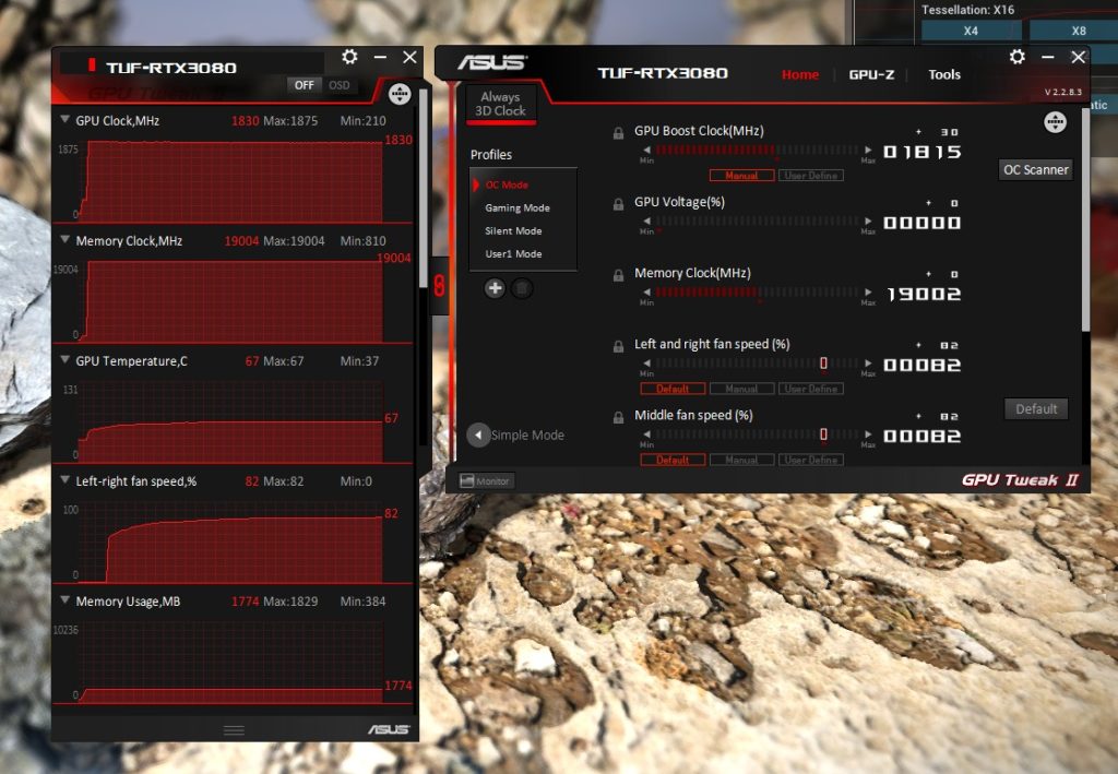 En cuanto a rendimiento, estamos frente a la tarjeta gráfica más potente del mercado. Y se nota. Partiendo por las configuraciones posibles, tenemos el Asus GPU Tweak II, una herramienta que, si bien tiene un par de problemas, permite explorar bastante bien lo límites de la tarjeta gráfica. En nuestras pruebas encontramos que es mejor mantener el modo OC propuesto por la aplicación más que encontrar el límite manualmente. El aumento en potencia no será notable en juegos por lo que es mejor irse a la segura.