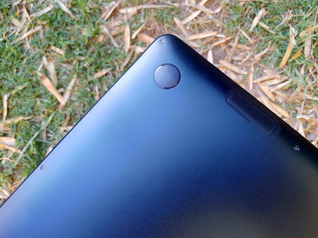 Las bisagras son bastante firmes para mantener a la pantalla en una posición fija y sin movimientos. Para ser un equipo de 15 pulgadas es bastante liviano de portar, pesando 1.88 kilos. Al utilizar el teclado, su diseño resulta ser bastante agradable y cómodo con una distribución adecuada para no presionar otras teclas sin querer, este último cuenta con retroiluminación mediante luces LED, lo que ayuda bastante para la noche o condiciones de poca luz. Se agradece que el dispositivo cuente con lector de huellas dactilares, con este podremos adoptar una capa adicional de seguridad y es compatible con Windows Hello.