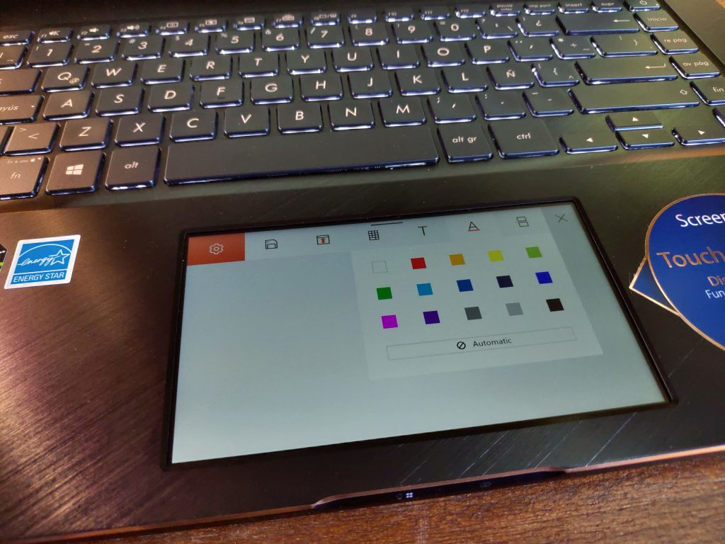 Así mismo el ScreenPad posee otras funciones que se complementan con Windows 10 y otras aplicaciones como Microsoft Office. Incorporando accesos directos para abrir aplicaciones como la configuración de Windows, la tienda de aplicaciones Microsoft Store, la aplicación de correo de Windows, calendario, entre otros accesos.
