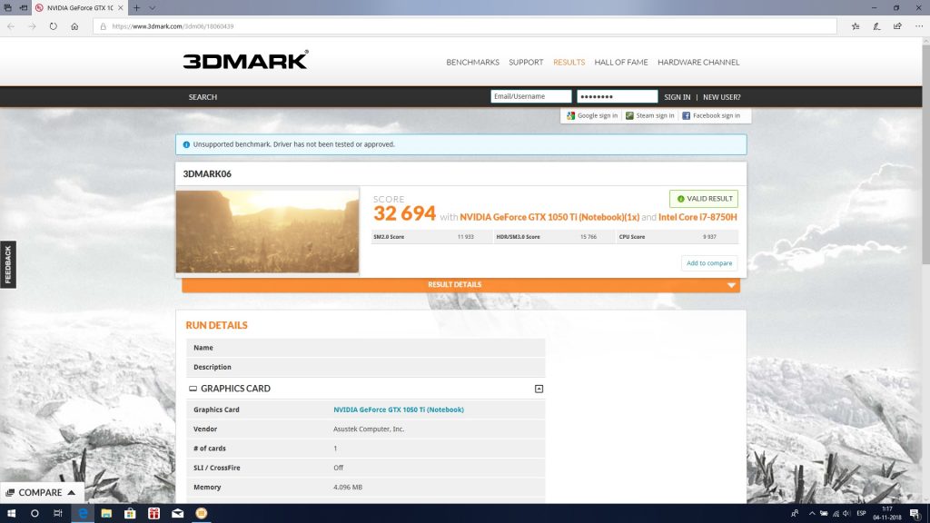 Si bien no podremos ejecutar todos los juegos de la actualidad en su calidad máxima de gráficos, realizando unos pocos ajustes lograremos correr todos los juegos de la actualidad sin problemas. Sin embargo, ejecutamos pruebas sintéticas con los bench 3DMark 2006 y el actual 3DMark (2018), logrando los siguientes resultados: