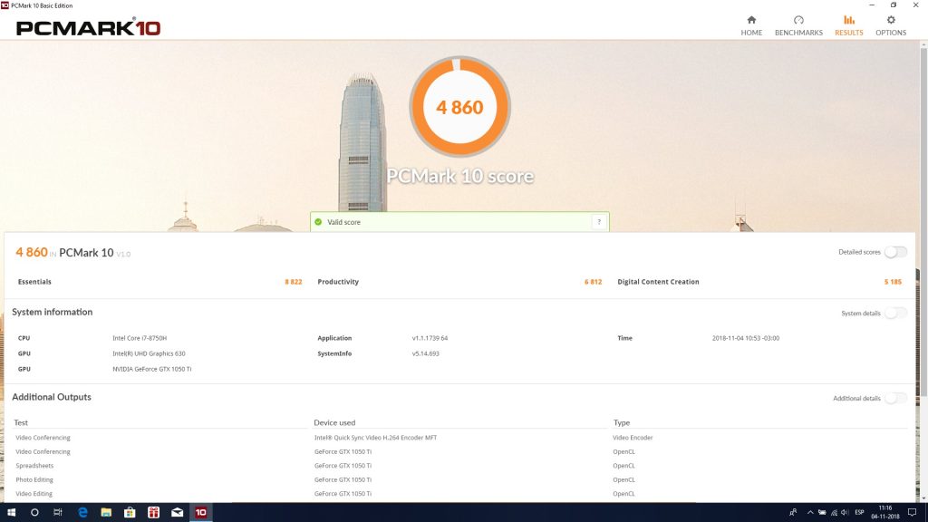 Como es de esperar, ejecutamos algunas pruebas sintéticas para conocer un poco más sobre el rendimiento del portátil, en esta ocasión usamos el PCMark 10, y el resultado es el siguiente: