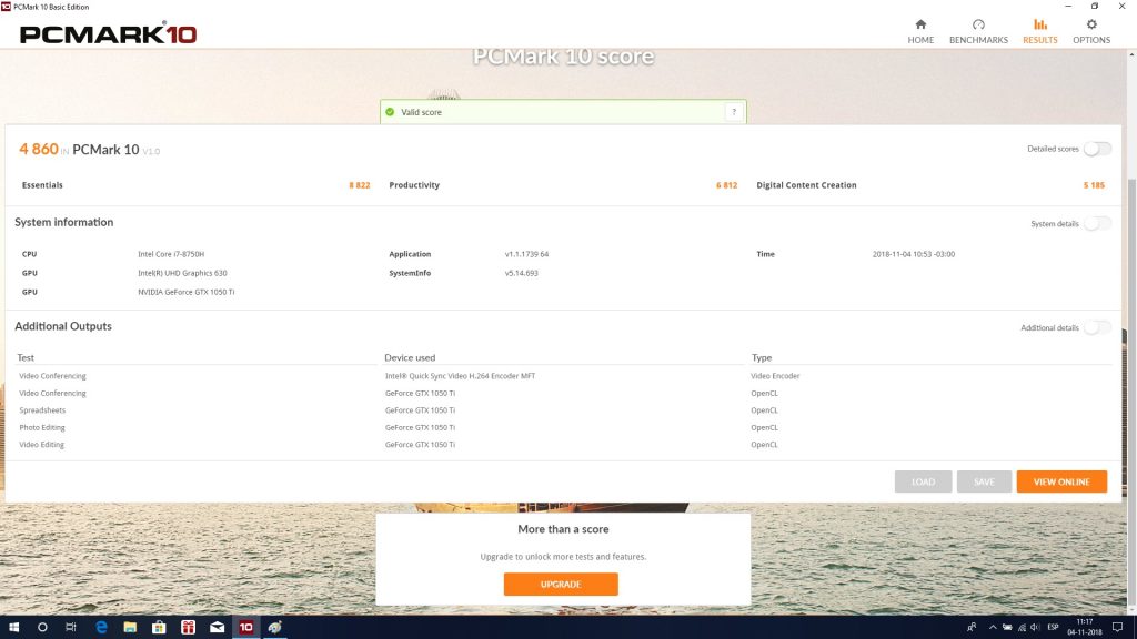 Esta es in dudas una de las secciones que a muchos usuarios les importa revisar a la hora de adquirir un computador portátil. El ZenBook Pro 15 que revisamos incluye Sistema operativo Windows 10 Home y un procesador Intel Core i7 8750H de octava generación con seis núcleos, 9MB de memoria caché L3 corriendo a 2.2GHz hasta 4.1GHz, esto hace que el dispositivo sea bastante actualizado para ejecutar todo tipo de tareas con bastante soltura.