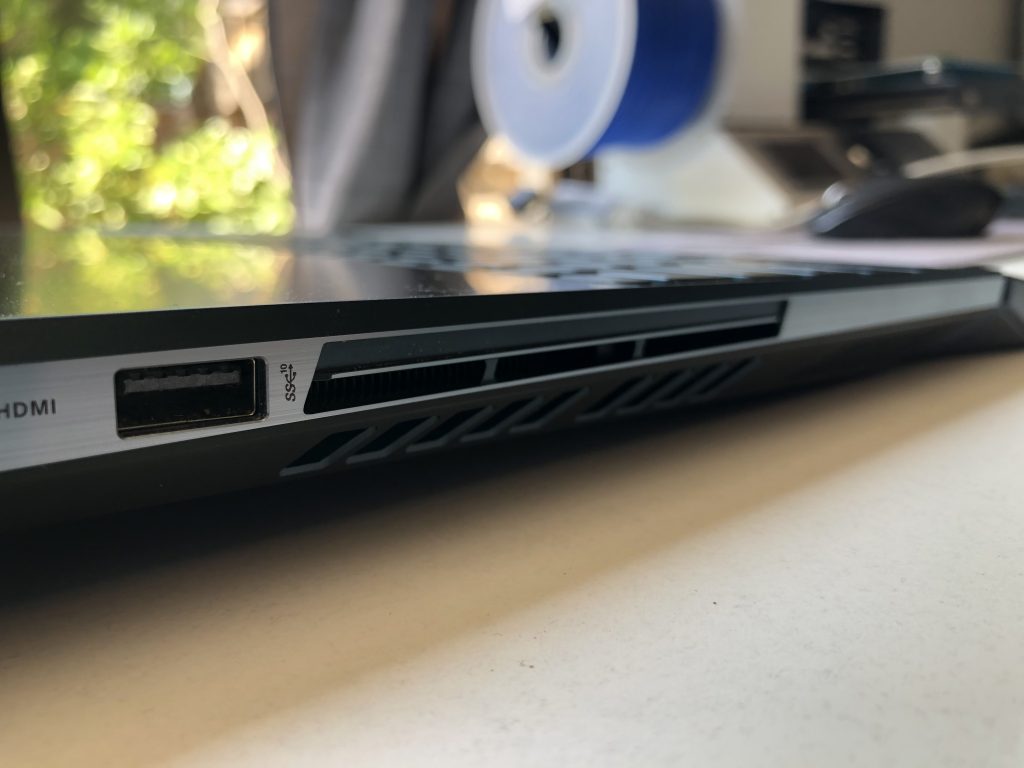 Como pueden apreciar en las imágenes, los grandes espacios de ventilación son los culpables de que tengamos poca conectividad. Un Intel Core i9 y una Nvidia RTX 2060 no se enfrían solos. Los componentes del a segunda pantalla también deben ocupar espacio al interior del equipo por lo que este sacrificio de puertos quizás fue necesario.