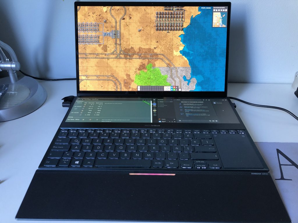 Sin importar el programa o tarea que le exigiera, desde modelar un objeto en 3D hasta compilar un programa, no tuvo ningún problema. Los 8 núcleos y 16 hilos de trabajo son más que potentes. Probamos desde editores de código en simultáneo con documentación abierta en la pantalla secundaria, imágenes en Google Chrome con Autodesk Inventor abierto y no tuvimos nunca problemas en cuanto a la apertura de programas, archivos, etc. El ZenBook Pro Duo es realmente una estación de trabajo portátil.