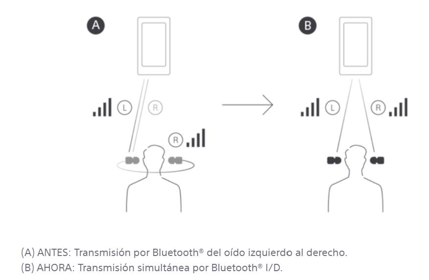 Según Sony, estos audífonos cuentan con una mejor conectividad Bluetooth, ya que integran un chip que hace que el smartphone envíe la señal a ambos auriculares de manera separada, a diferencia de otros modelos que reciben la señal en el auricular izquierdo y éste le envía señal al derecho.