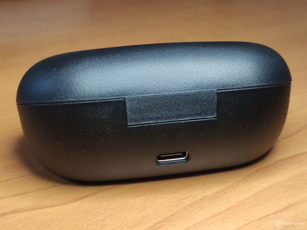 Hablando del estuche de carga, te cuento que es del mismo material de los audífonos, a excepción de la tapa que es un plástico semitransparente. También cuenta con un LED que muestra el estado de carga del estuche.