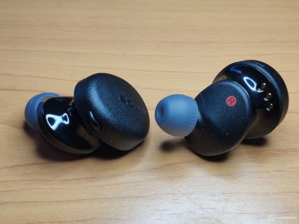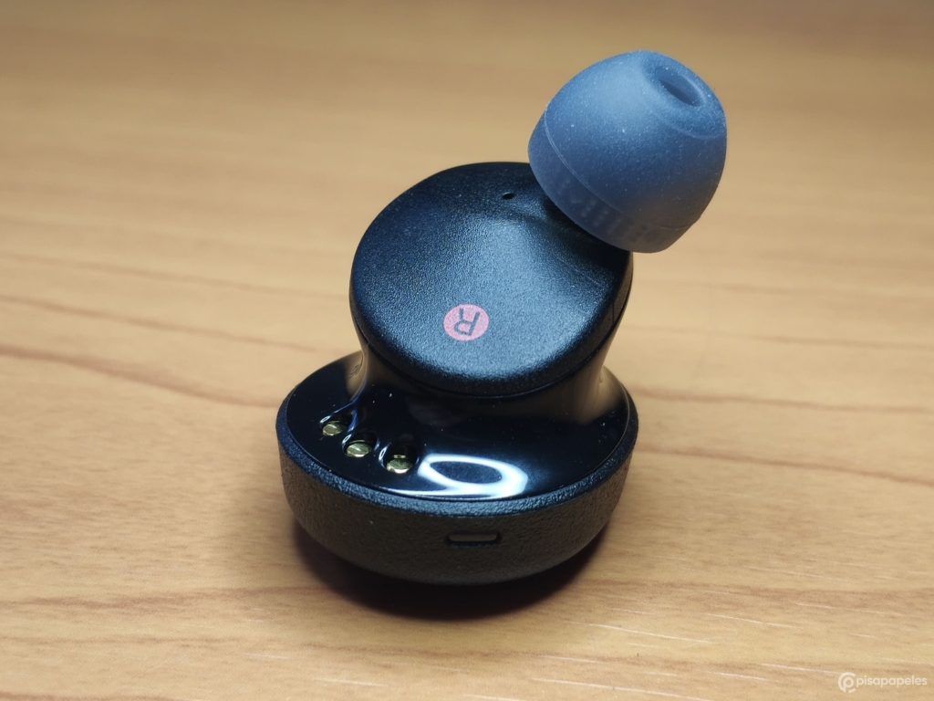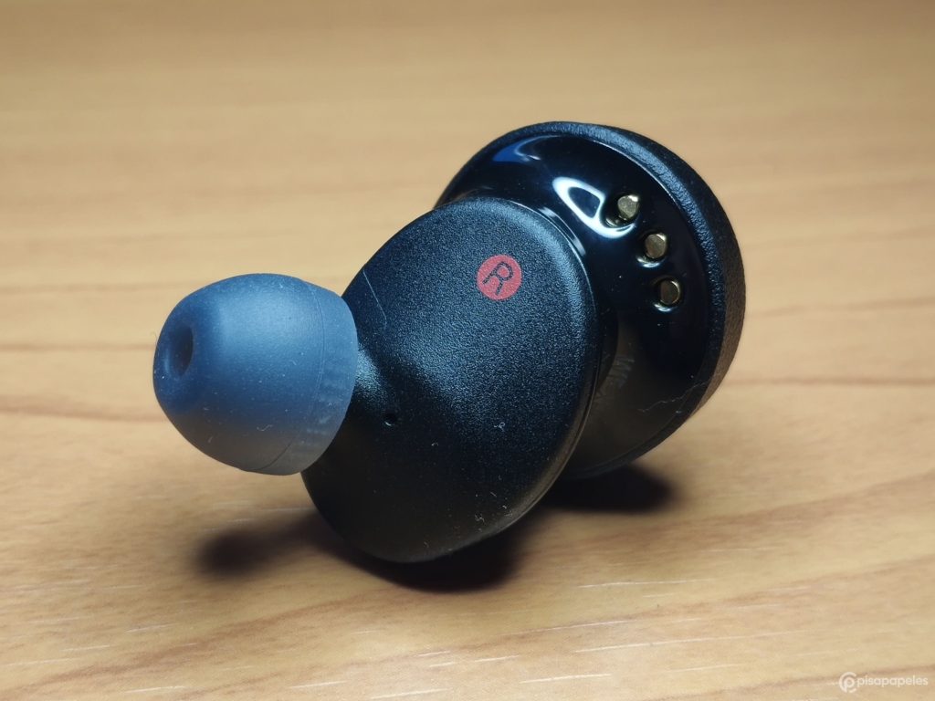 Cada uno de los audífonos cuenta con su propio botón de encendido, una luz LED para indicar el estado y tres pines que nos permitirán establecer la carga de la batería con el estuche.