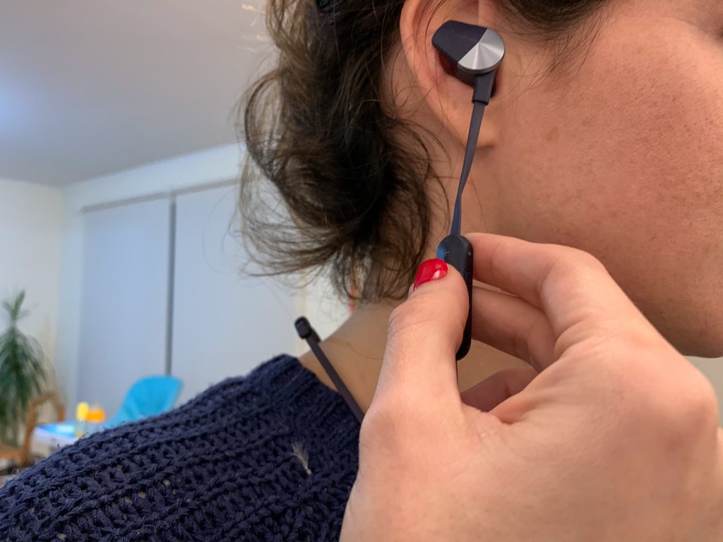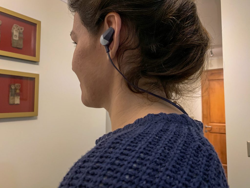 Entrando un poco más al diseño funcional del producto. Son bastante livianos, lo que es clave para audífonos que están pensados para realizar actividad física. A esto se suma que la ergonomía es bastante buena, lo que –al menos en mi caso– logró un calce perfecto con mi oreja. Esto ha dado como resultado que no moleste para nada tenerlos puestos por largos periodo de tiempo.