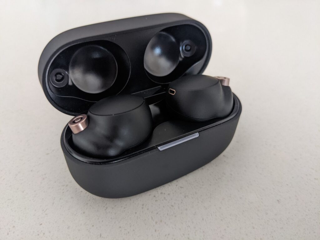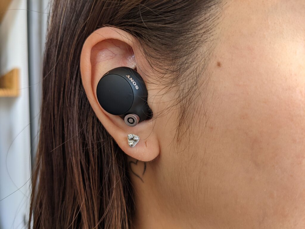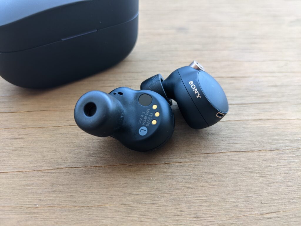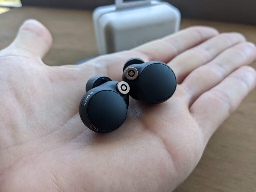 Los WF-1000XM4 son mucho más chicos que la versión anterior, ofrecen un diseño circular, medio compacto, que a mi gusto se ve mejor que el “bastón” que tienen algunos in-ear como los AirPods Pro o el diseño rectangular que tienen los Bose QuietComfort Earbuds –la otra gran empresa competidora de Sony en el mercado de la cancelación de ruido.