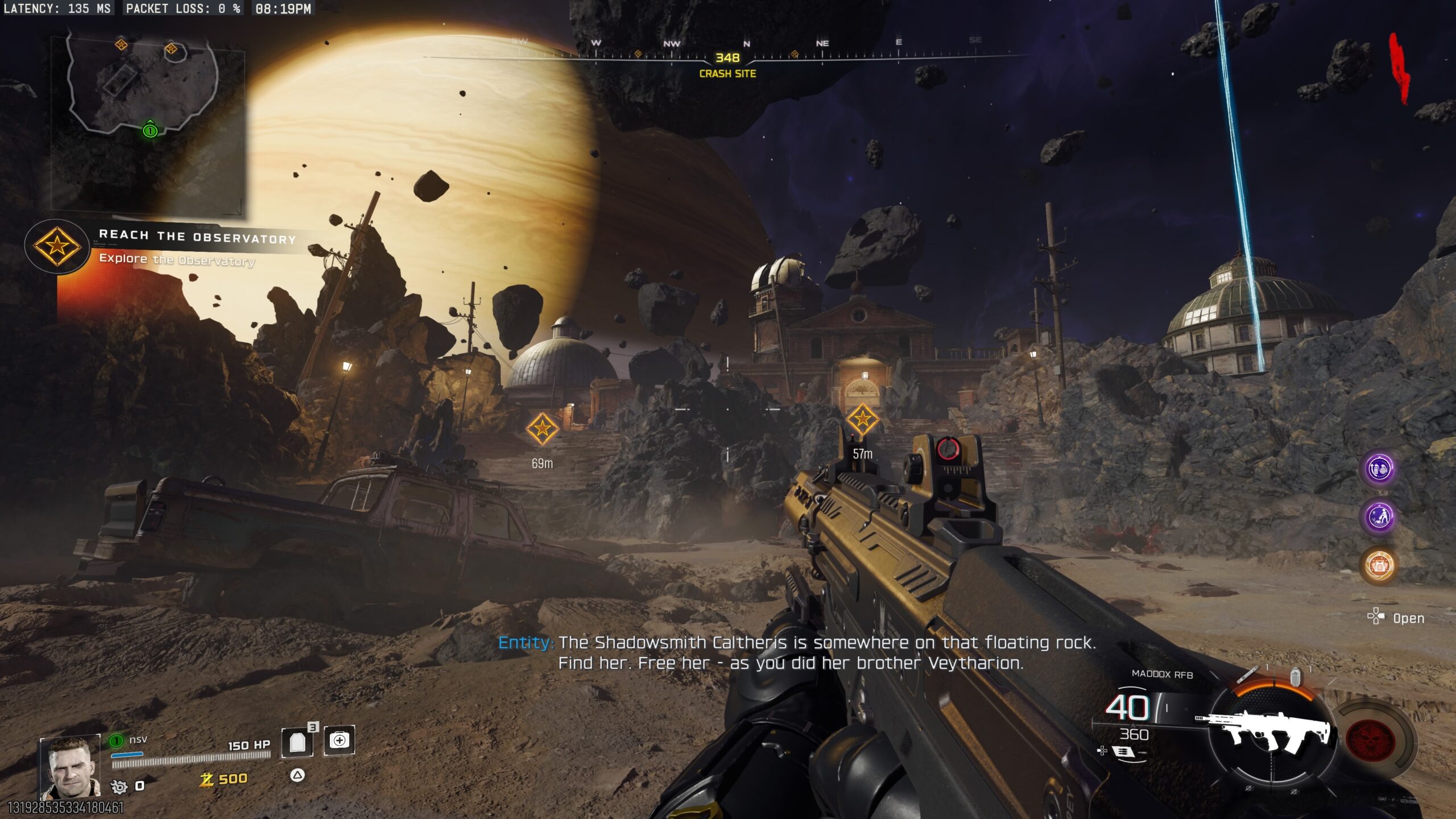 De hecho, este mapa fácilmente tiene una de las ambientaciones más distintivas en la historia del modo — un observatorio en una calavera gigante flotando en los anillos de Saturno. El sky-box, con ese planeta y el espacio de fondo, precioso.