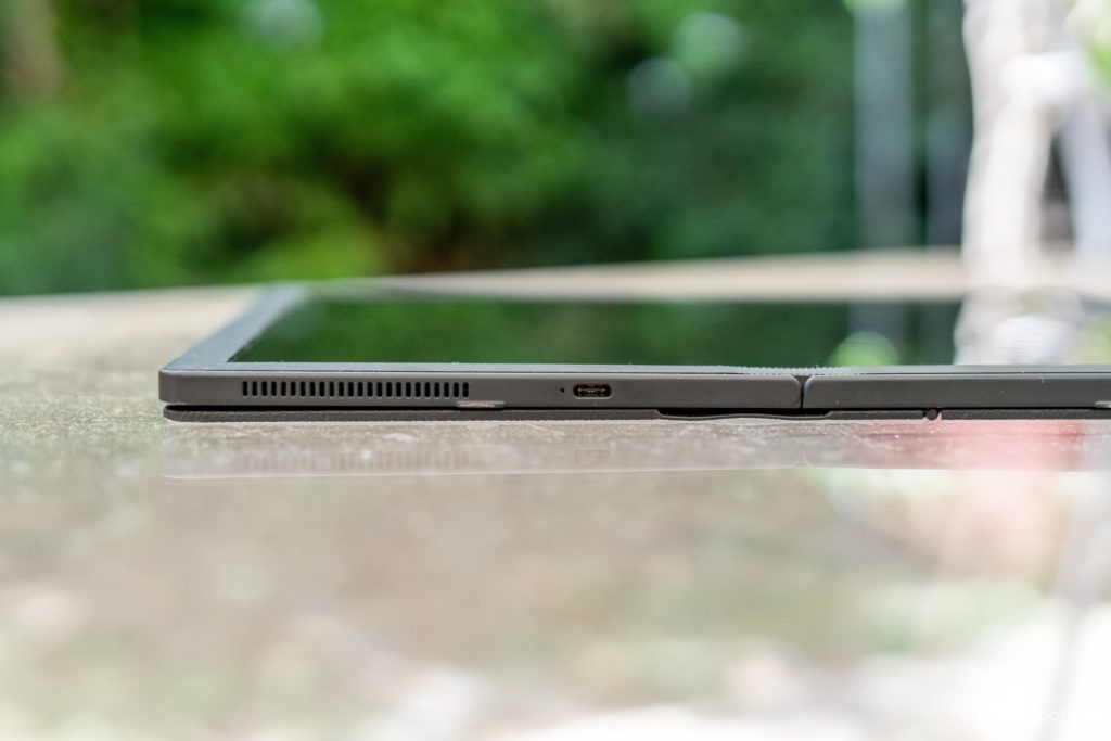 Los puertos de expansión definitivamente no son una virtud, ya que el Lenovo ThinkPad X1 Fold sólo incluye 2 puertos USB-C revisión 3.2 de segunda generación. Si quieres utilizar un accesorio de uso común, como un pendrive, un disco duro externo, audio por Jack de 3.5 mm, conectar tu viejo teléfono, un mouse y más, tendrás que recurrir a un hub de USB-C que entregue los puertos que necesites como del tipo A, HDMI, etc. Desafortunadamente el fabricante no incluye ningún tipo de adaptador o hub en la caja, por lo que sus puertos son insuficientes.