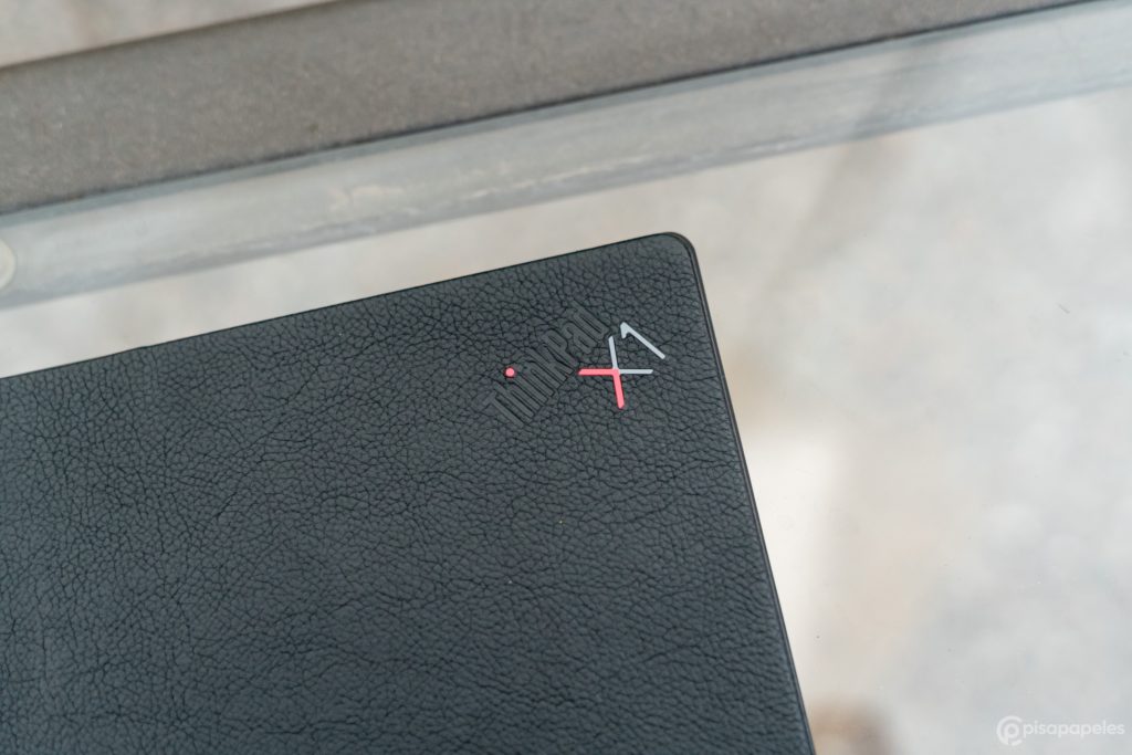 Por otro lado, la parte trasera es bastante bonita y elegante. Su acabado de imitación cuero (sí, es cuero artificial) le entrega un aspecto más premium y formal al equipo.