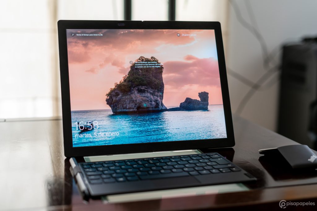 Para ir terminando con este segmento, el sistema operativo que posee el ThinkPad X1 Fold es Windows 10 Home Single Language. Acá tuve que actualizar el equipo de la compilación 2009 a la 20H2 para mostrar un entorno actual de uso. El equipo también cuenta con una cámara que cumple una función híbrida, esta es HD de 5 Megapíxeles más un sensor infrarrojo para reconocimiento facial con Windows Hello. Algo que se agradece bastante para entregar una capa adicional de seguridad.