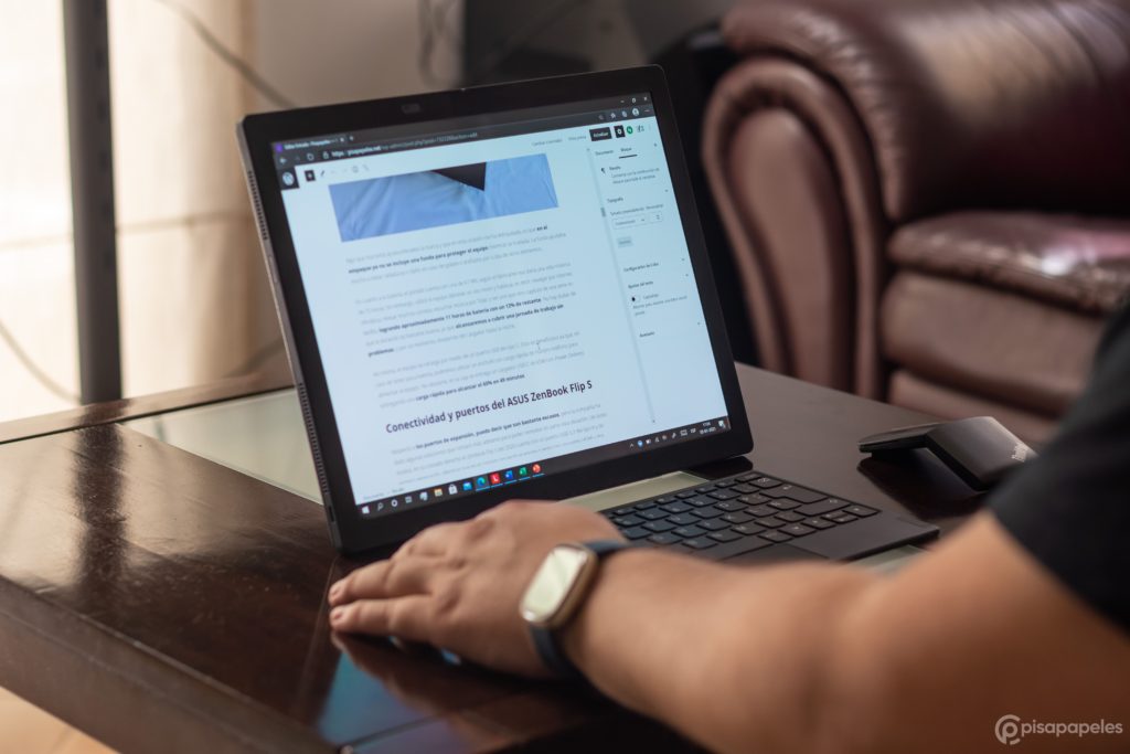 Pasando a lo multimedia, este dispositivo te permitirá interactuar mucho mejor que un PC tradicional, ya que el teclado físico de un notebook es más aparatoso, y este portátil es más cómodo para visualizar películas, videos, jugar algo de forma casual, escuchar música, y mucho más gracias a su soporte ubicado en la funda de cuero. Del mismo modo, su pantalla OLED con resolución 2K permitirá apreciar todos los contenidos que vamos a consumir con una mejor calidad de imagen y nitidez.
