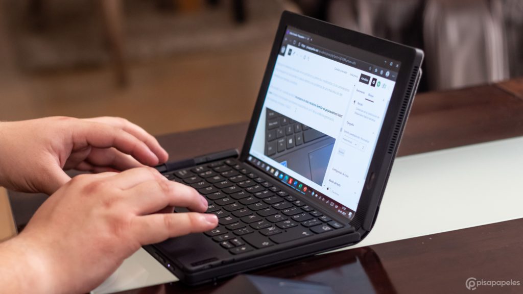 La portabilidad es una propiedad que destaca mucho en el ThinkPad X1 Fold. Su atributo plegable permite ser llevado en bolsos muy pequeños, o cargarlo en la mano con una facilidad increíble. Así mismo, esto se complementa con su bajo peso de 999 gramos.