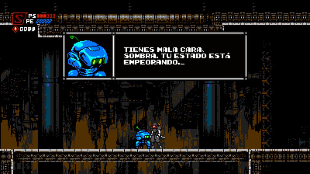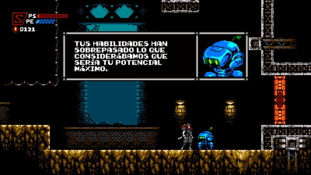 Desde el punto de vista de jugabilidad, Cyber Shadow nos recuerda mucho a Ninja Gaiden o a Megaman X, pues empezamos con un protagonista que no tiene demasiados poderes, y que debe ir de izquierda a derecha en un nivel para poder avanzar, ocasionalmente haciendo uso de su arma básica, que en este caso es una espada.