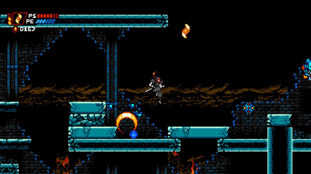 Esto no está presente en Cyber Shadow, pues los niveles están diseñados para ser pasados una y otra vez, si no que tienen la suficiente capacidad de entregarnos una o dos mejoras, especialmente de puntos de vida antes de ir al próximo.