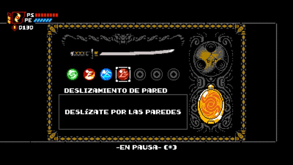 Al querer emular un juego en estilo de 8 bits, Cyber Shadow hace uso de tan solo 2 botones para jugar, el de saltar y el de atacar. A medida que vamos avanzando y desbloqueando habilidades, estas también hacen uso solamente del botón de ataque.