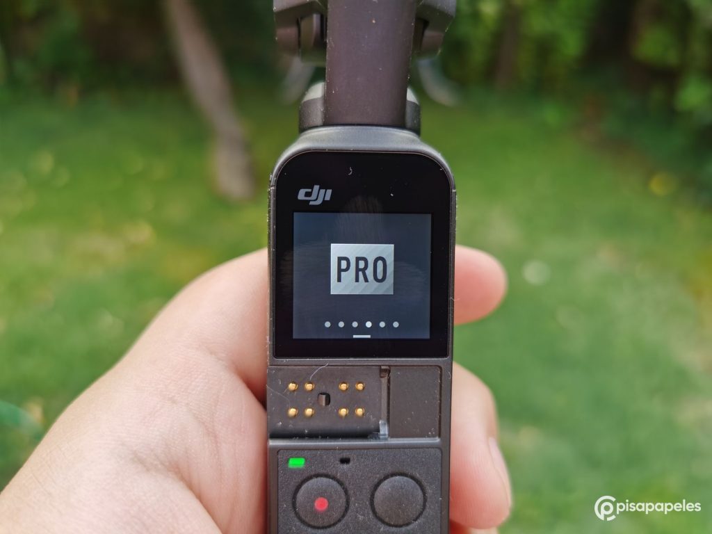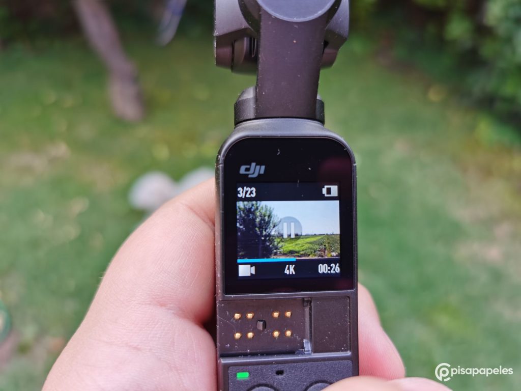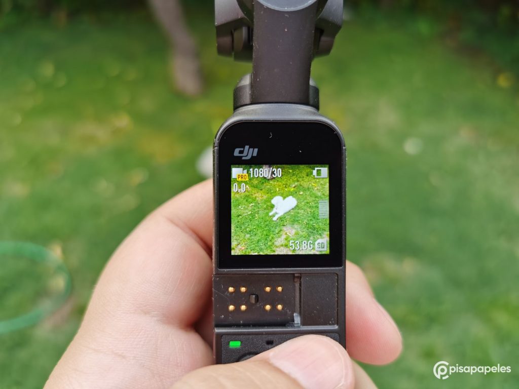 La Osmo Pocket cuenta con una pequeña pantalla que es completamente táctil y su aspecto es 1:1, esto último al principio podría ser algo bueno porque se adapta correctamente al diseño del dispositivo. Sin embargo, entra en conflicto con los videos grabados en 16:9.