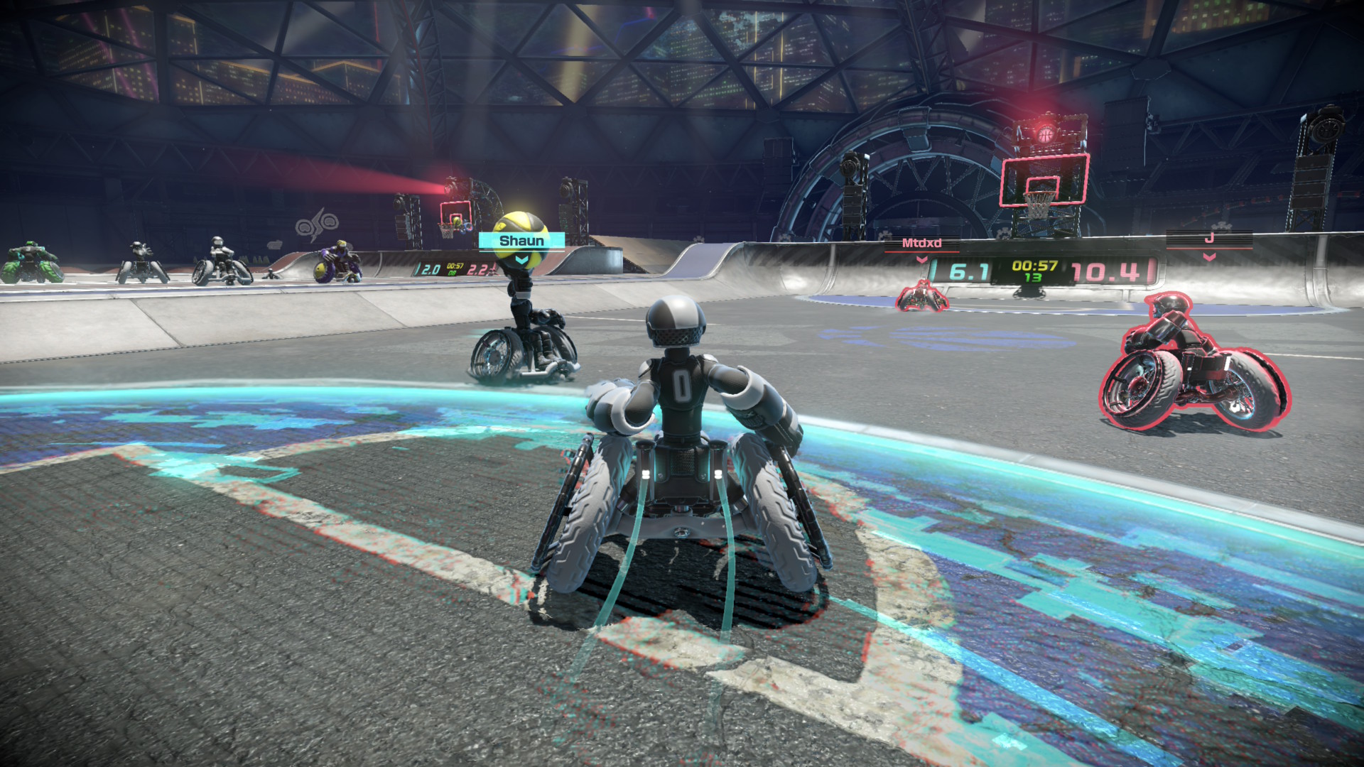 Pero en Drag x Drive los mini-juegos son comparativamente deficientes. Entre las rondas de baloncesto clásico, los lobbies alternan entre uno de los solo dos mini-juegos principales.