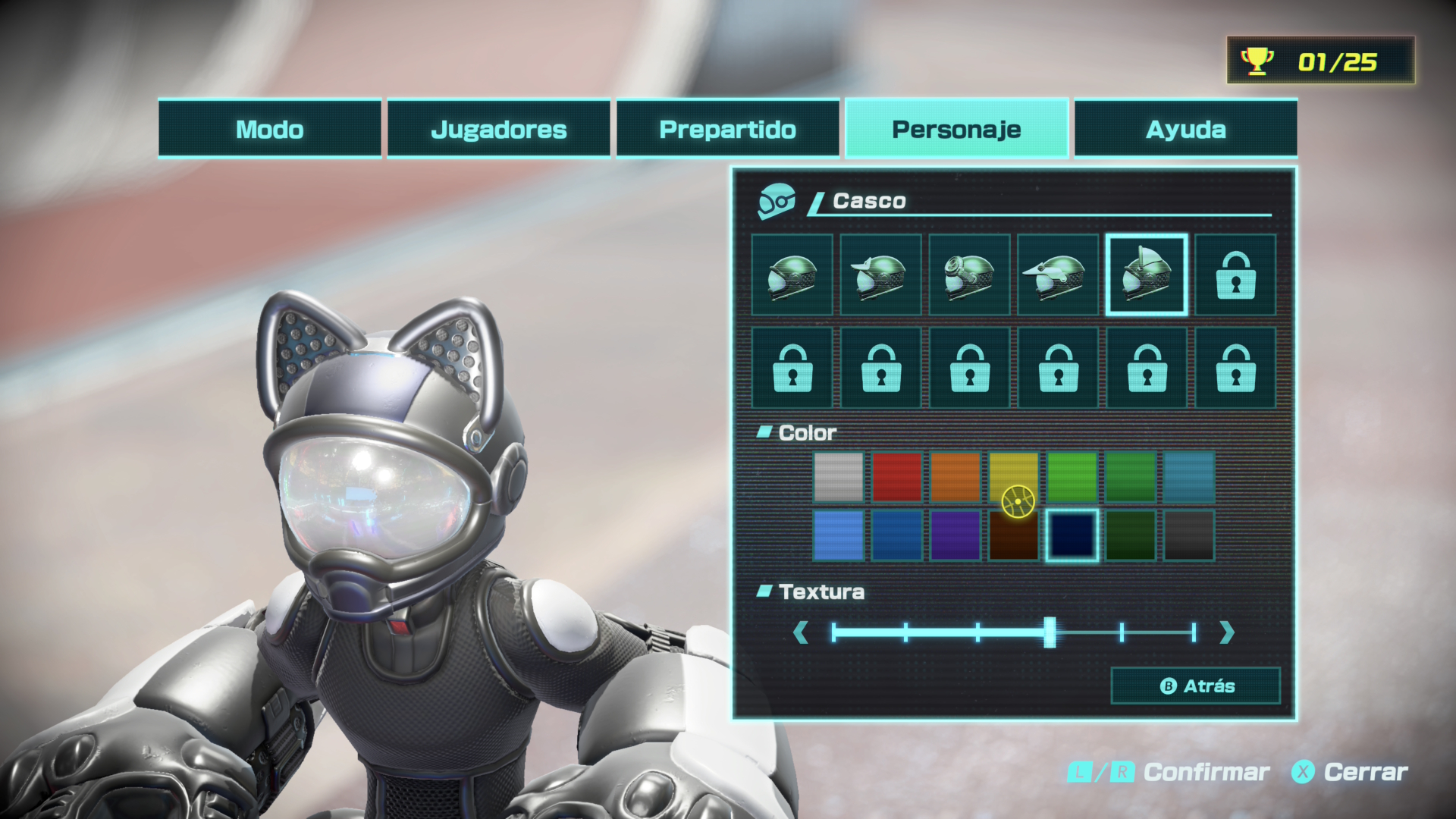 Hay cosas que son realmente muy buena en el juego. Como los trofeos que obtienes al completar minijuegos, que te ayudan a desbloquear nuevas opciones de personalización. Por ejemplo, puedes conseguir nuevos cascos, incluyendo uno con orejas de gato. Aparte de eso, puedes alterar la textura y los colores de tu armadura, marco y ruedas.