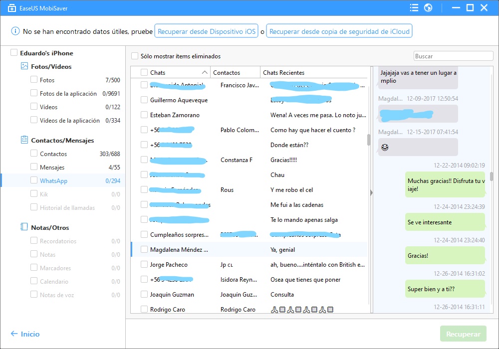 En esta ocasión, probaremos el software MobiSaver, de la empresa EaseUS. Más específicamente, la versión para iOS. Este programa permite rescatar tanto fotografías como mensajes de WhatsApp, recordatorios, mensajes de texto, etc. Y todo con una interfaz bastante simple. Vamos al detalle.