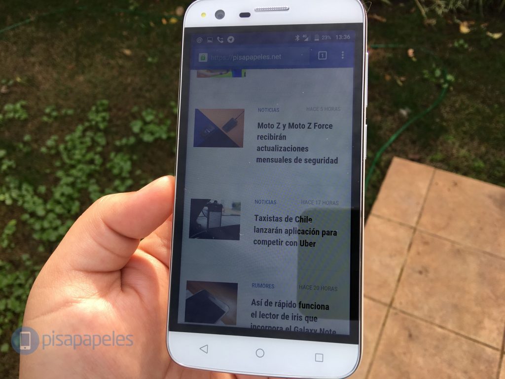 Y finalmente acá te muestro cómo se comporta la pantalla a plena luz del día. Eso si, el sensor que controla el brillo al parecer está mal calibrado, ya que con luz directa del sol, no me ofrecía el brillo al máximo.