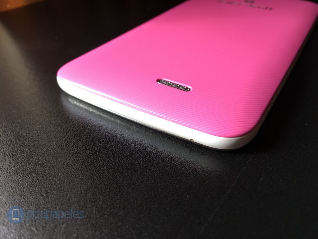 La parte trasera tiene una cobertura texturizada que te ayudará bastante a tener un mejor agarre cuando lo sostienes en tu mano. Esta parte es totalmente removible.