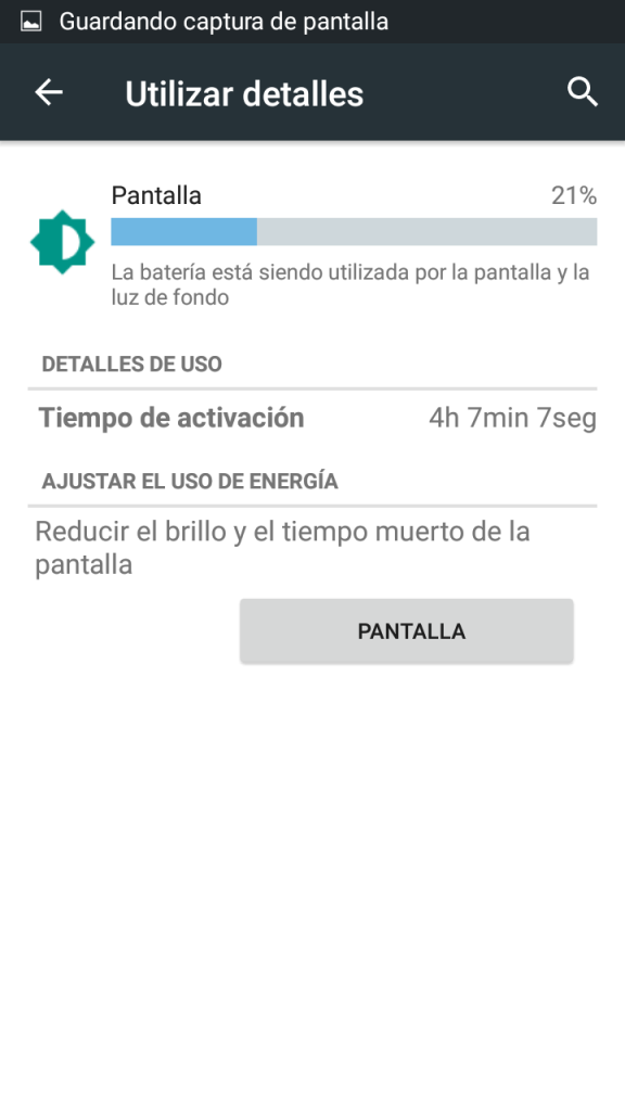 Tiempo de pantalla encendida: 4 horas, 7 minutos, 7 segundos