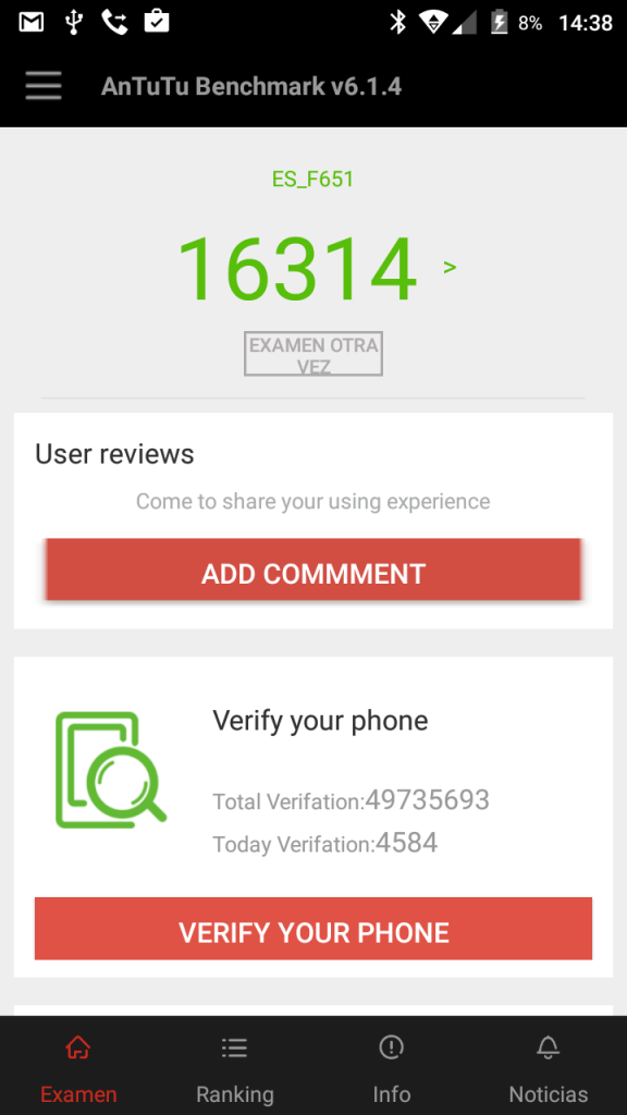 Queremos transparentar todos los resultados de las pruebas que hacemos con los equipos, así que por eso te dejaré solo capturas de pantalla, no escribiré ningún resultado.