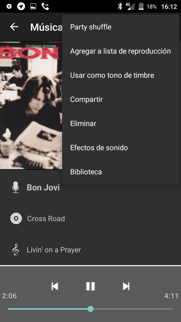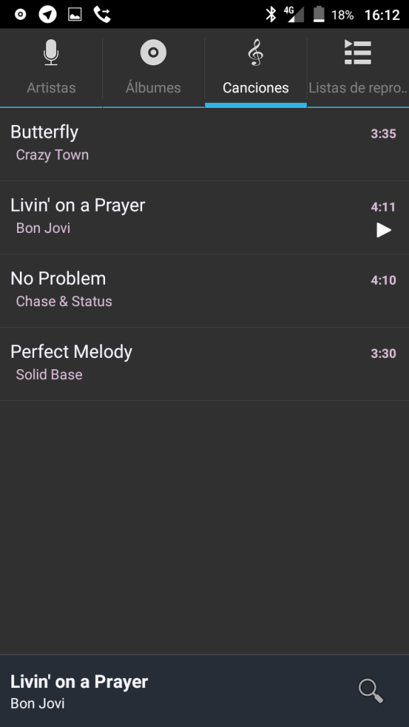 Partiendo por el reproductor de música, te cuento que es el original que viene en Android, uno que tiene una interfaz algo fea, pero que cumple muy bien con su trabajo de reproducir tu música que tengas almacenada.