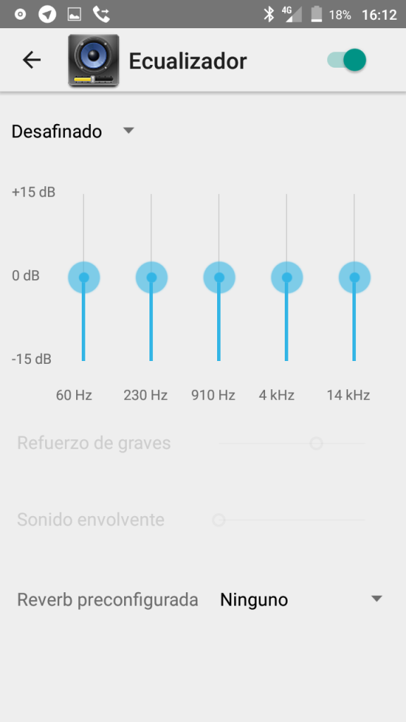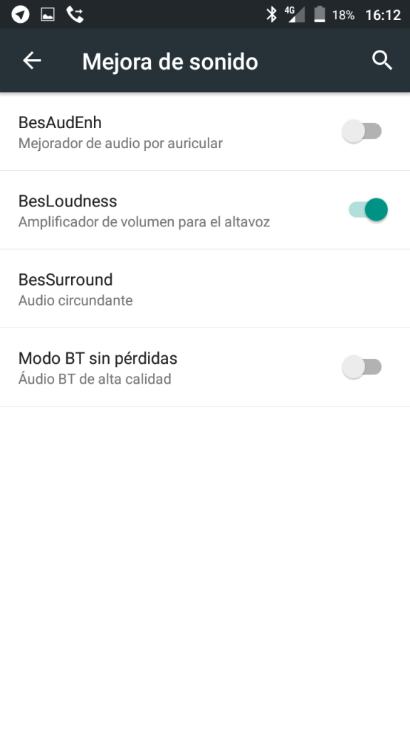 El sistema también trae su ecualizador de cinco bandas personalizable y efectos de audio como un refuerzo de graves y sonido envolvente. Adicional a lo anterior, encontraremos otro menú con más mejoras para el audio.