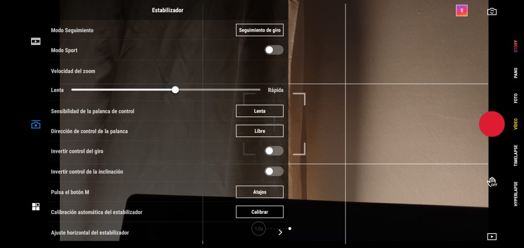 Hay varias otras opciones de ajustes, como la posibilidad de realizar una calibración del estabilizador, entre otras opciones Todo lo anterior y el resto de los modos de captura, te los mostraré en el siguiente video: