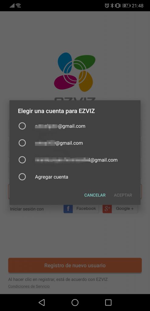 Una vez instalada la aplicación, toca la activación de la cámara, para ello la app solicitará la creación de una cuenta, por mi parte me la hice enlazada a mi cuenta de Gmail, una vez creada la cuenta tocará agregar el dispositivo, y debo decir que la forma de hacerlo es algo bien novedoso.