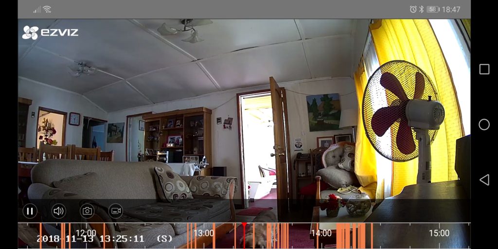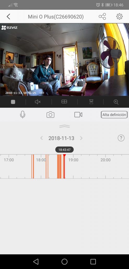 La cámara con memoria instalada y activada graba cada vez está detecta un movimiento, esta se muestra una línea de tiempo bajo los botones, en esta línea de tiempo podemos retroceder y avanzar cuanto queramos, pero sólo funciona si está guardado en el memoria instalada.